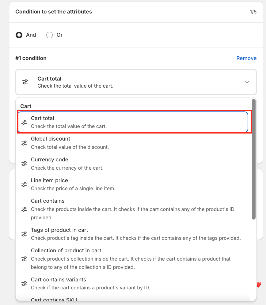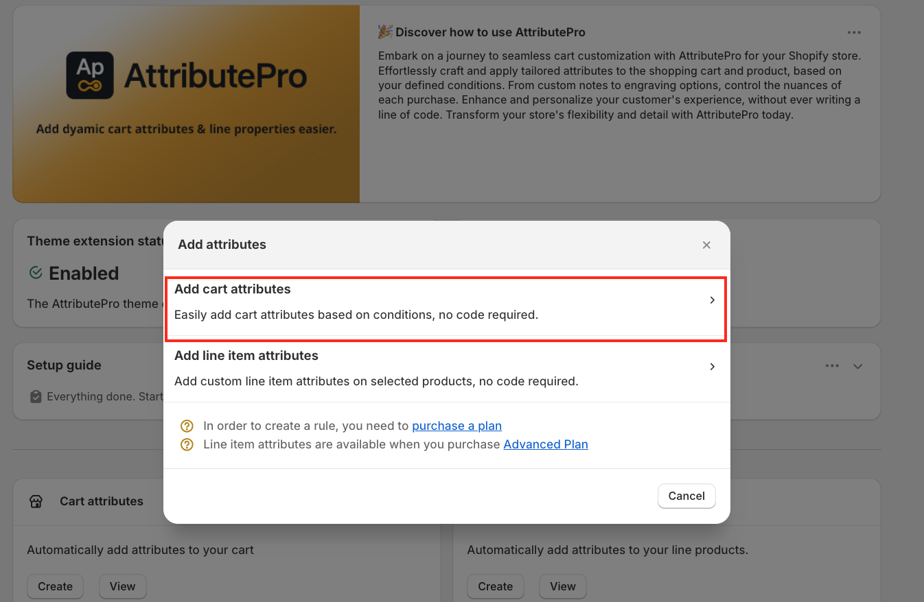 A pop-up window will appear. Select Cart Attribute to continue.
