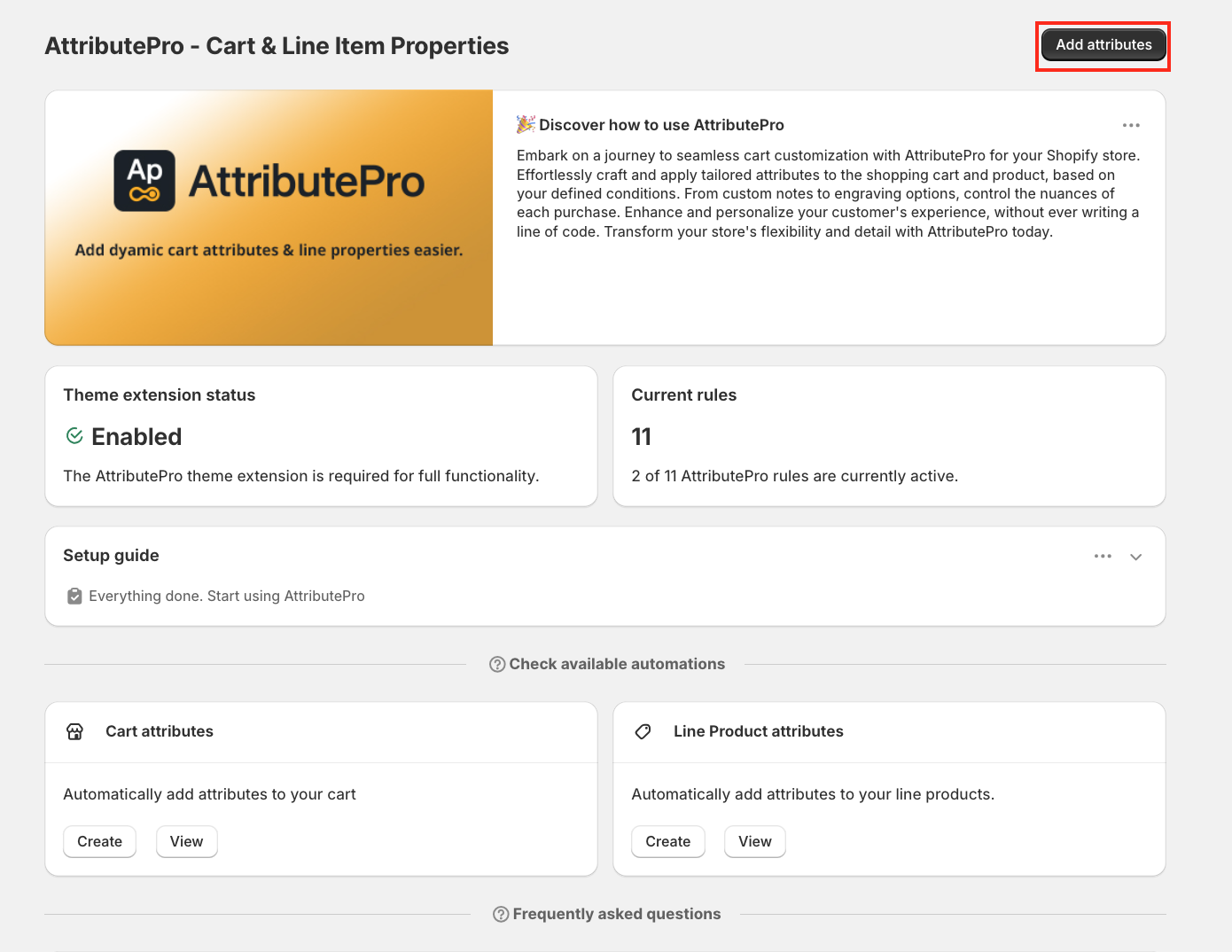 This cart attribute is set from the storefront. To ensure it works correctly, please enable the theme extension, open Theme Customisation, add the AttributePro app block to the checkout page, and save your changes.
