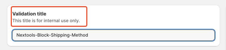 The first step is to assign a Validation title. This title is for internal reference only and will help you manage your rules more efficiently.
