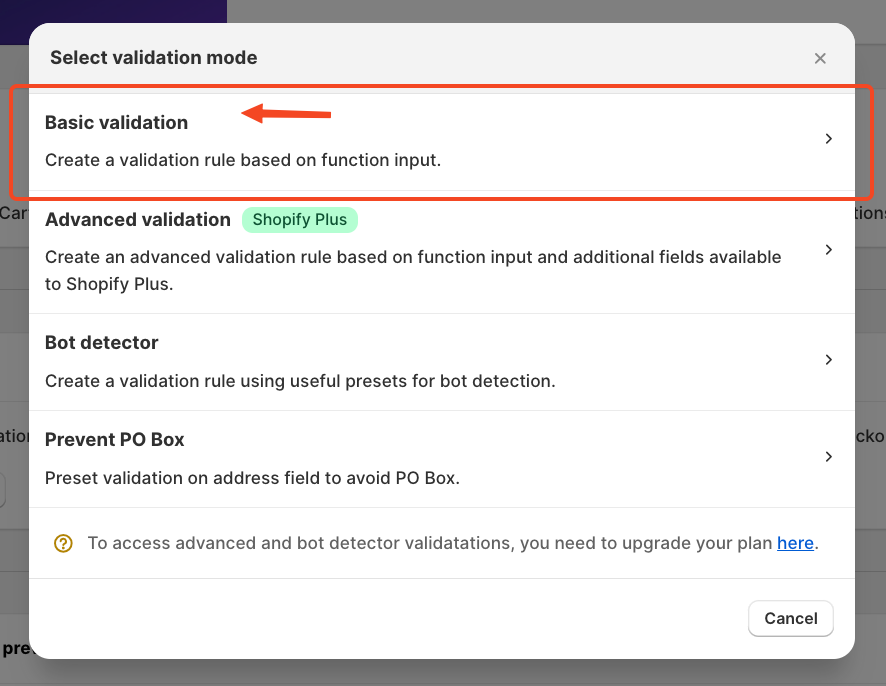 Once you select this option, a pop-up window will appear, prompting you to choose the type of validation you need. After selecting Basic Validation, the setup screen will appear.