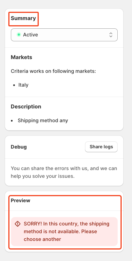 In this example, we will block the "Any" shipping method for customers in Italy.