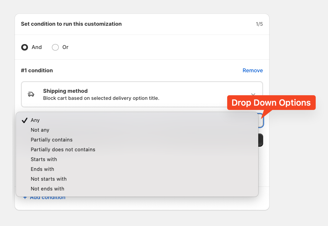 After selecting the input, configure how you want to apply the condition. There are multiple options available.