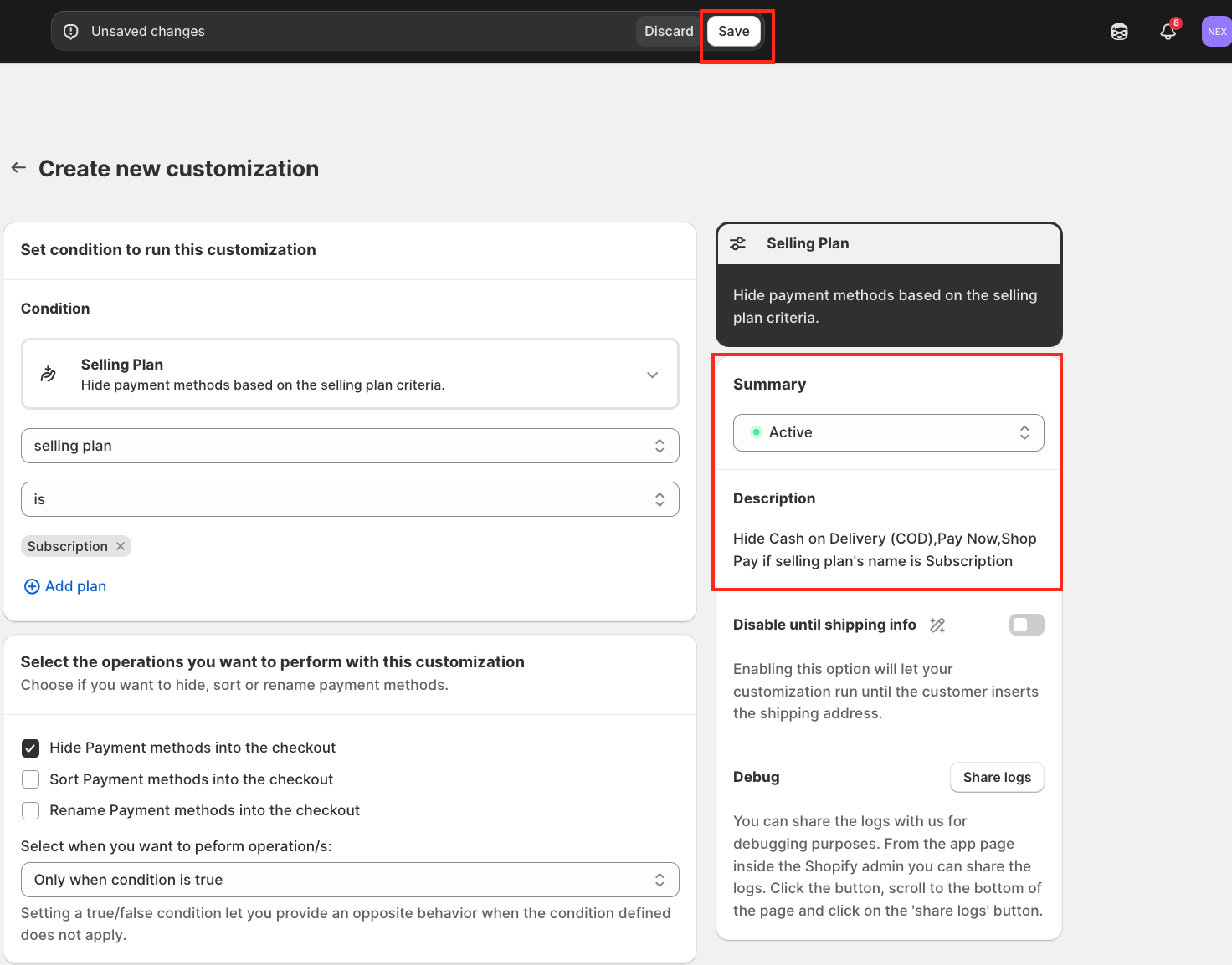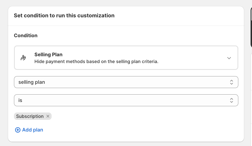 You can also click Add plan if you want to apply the rule to multiple selling plans.