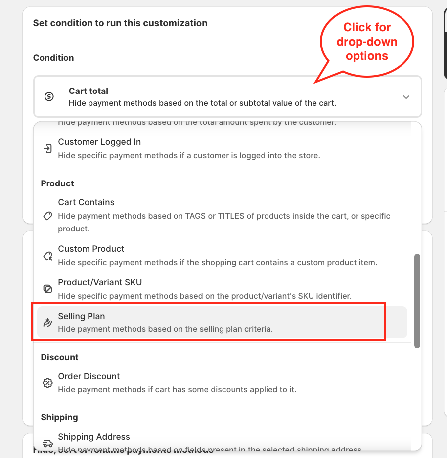 Click on Condition and choose: Selling Plan