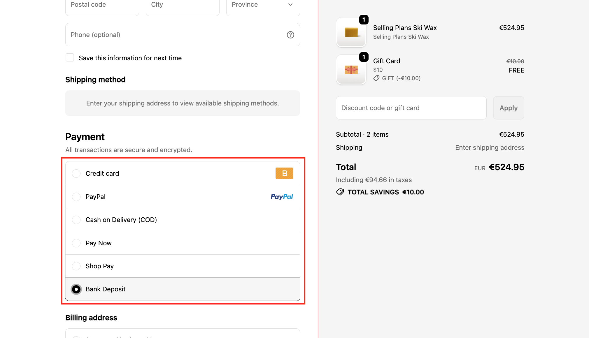 π In this tutorial, we are selecting Hide Payment Methods.
