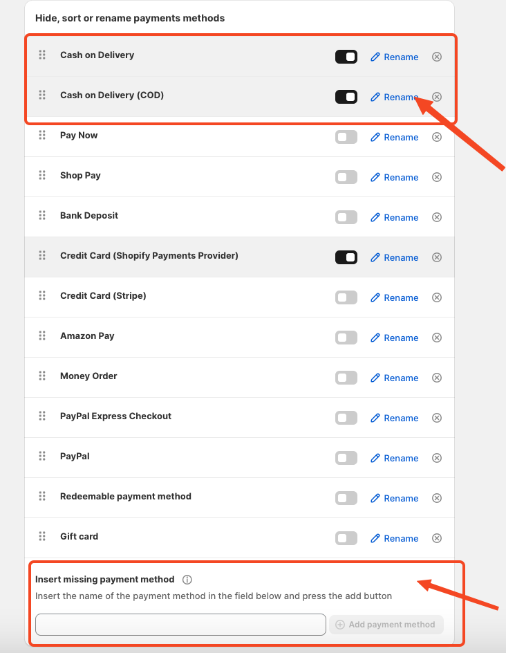 At times, when you attempt to hide, sort, rename, or add a new payment method, it may not work as expected. The method might not show up in your store or may not behave according to your setup. This usually happens when an incorrect payment method reference is used. This article will help you identify and fix such issues.