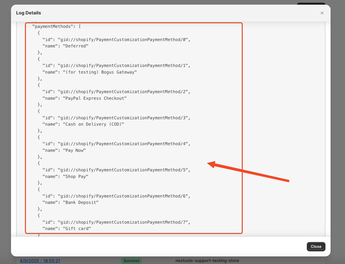 Let’s move forward and see how to retrieve the correct and active payment methods available in your store using the Logs page.