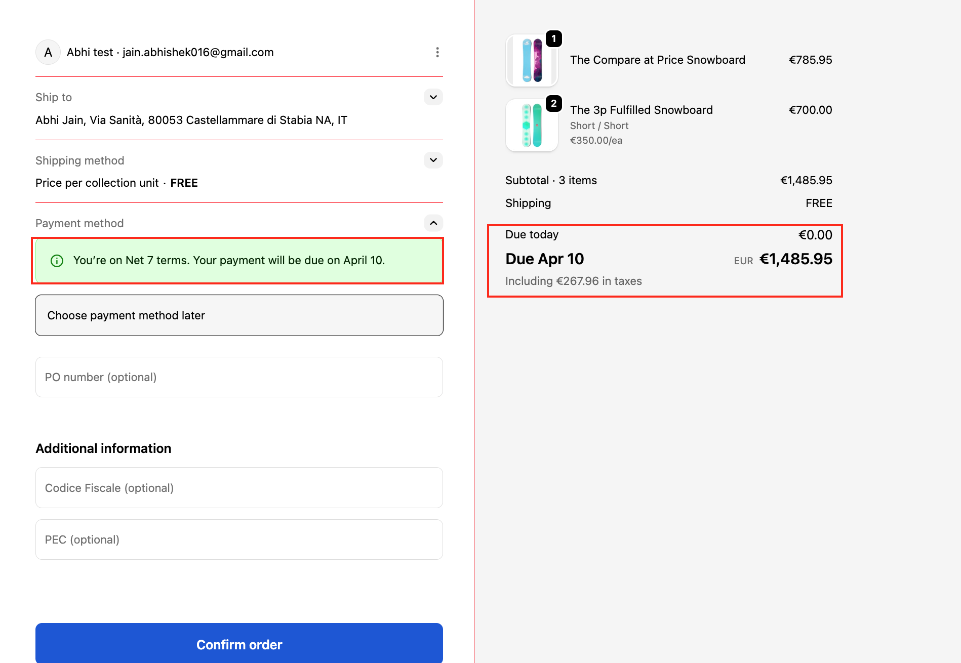 Now, test the rule on the storefront to verify that the payment terms are applied correctly.