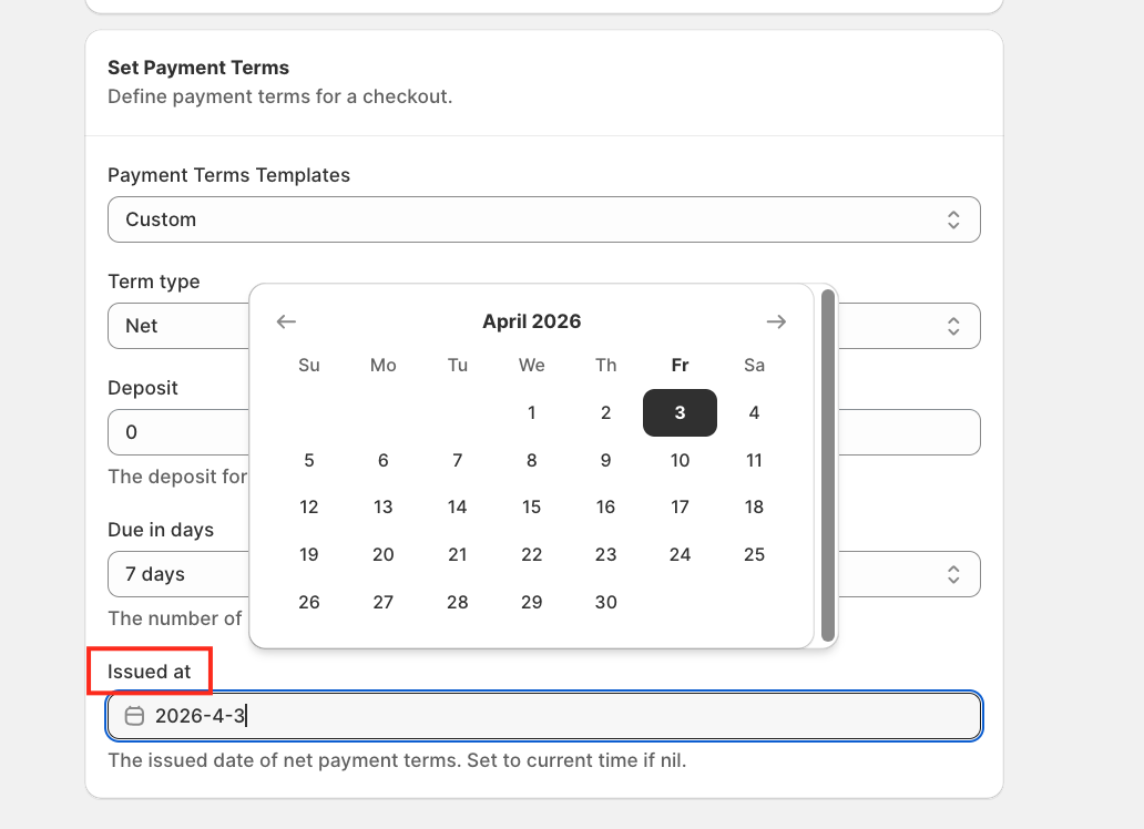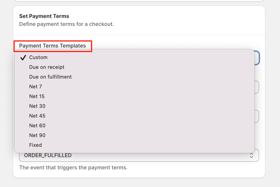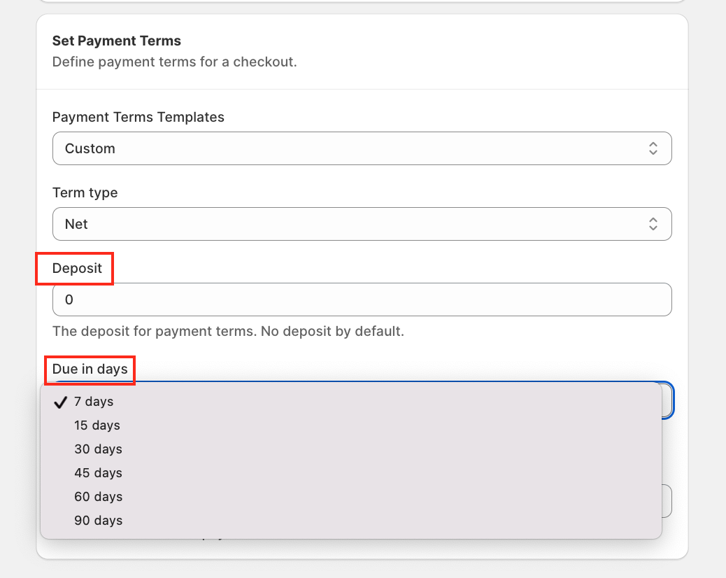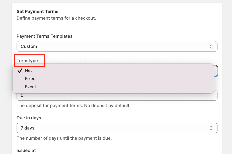 ⚠️ Important: Available fields may vary depending on the selected Payment Term Type.