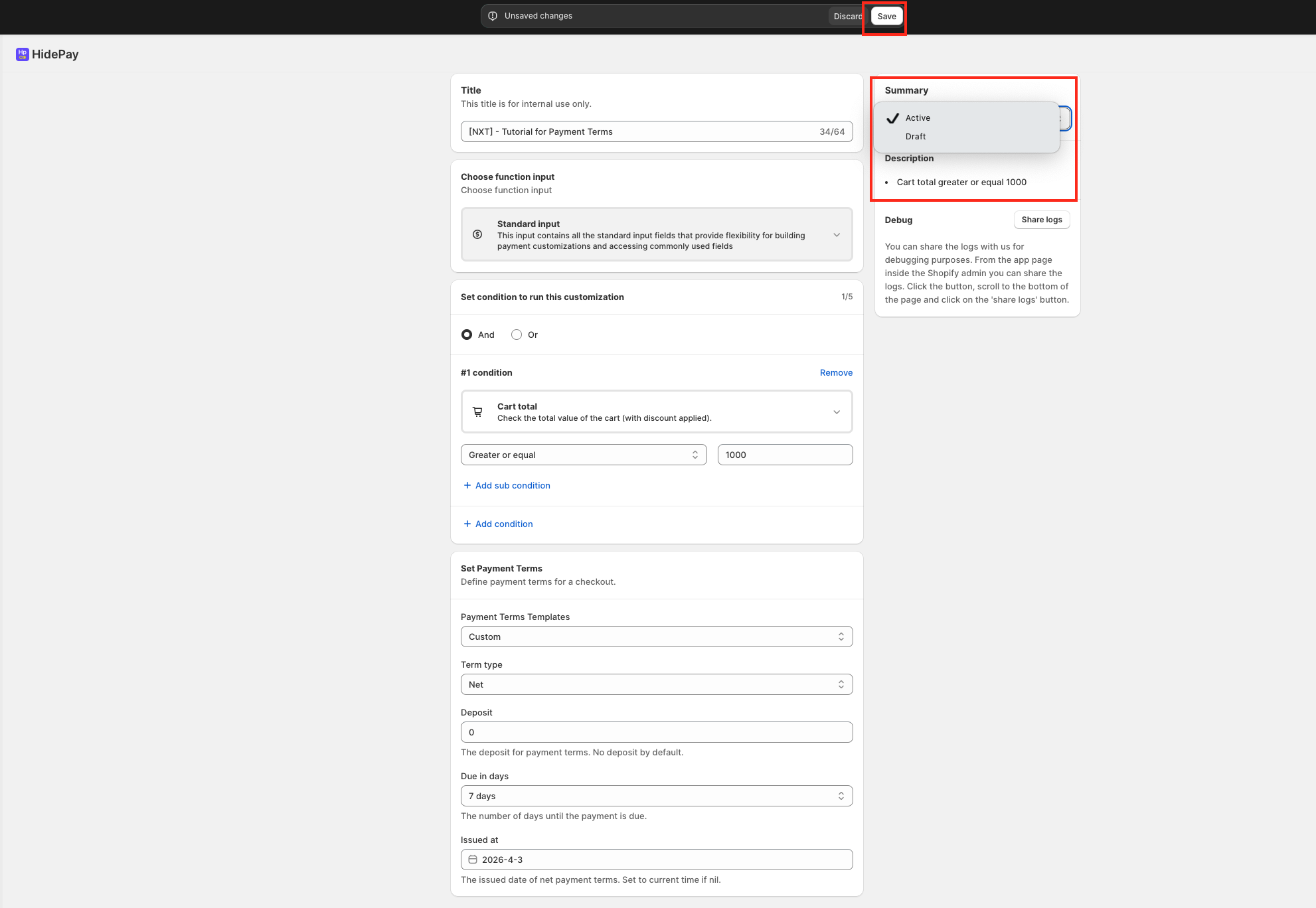 How to Set Up Payment Terms Customisation in Shopify Using HidePay
