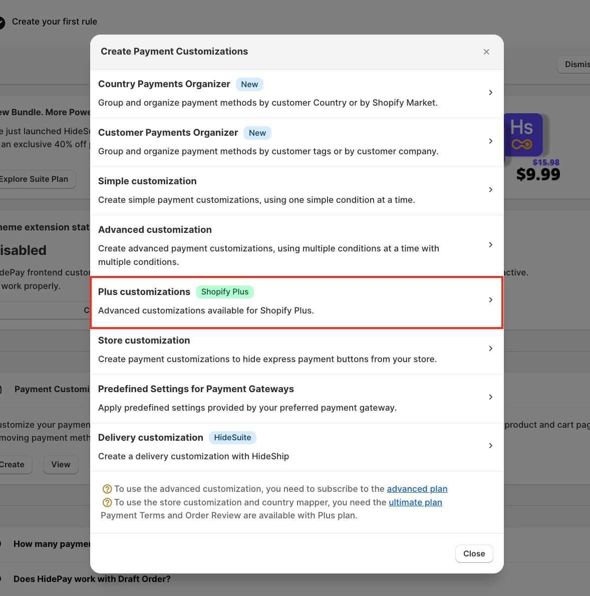 A pop-up will appear. Select Plus Customization (available for Shopify Plus merchants).