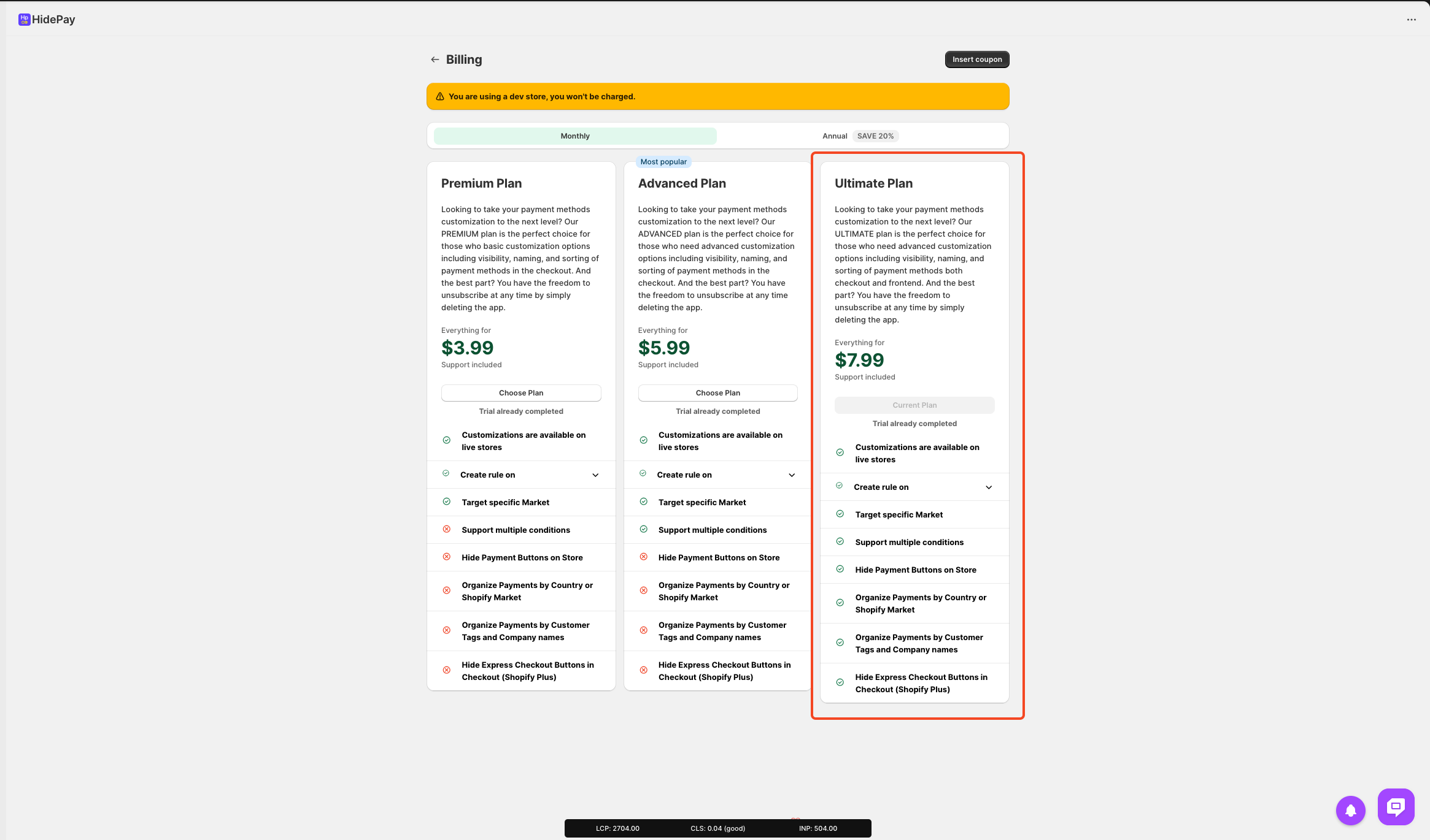 If you ever need to modify or deactivate the rule, simply return to the HidePay dashboard and make the necessary adjustments in the Store Section.
