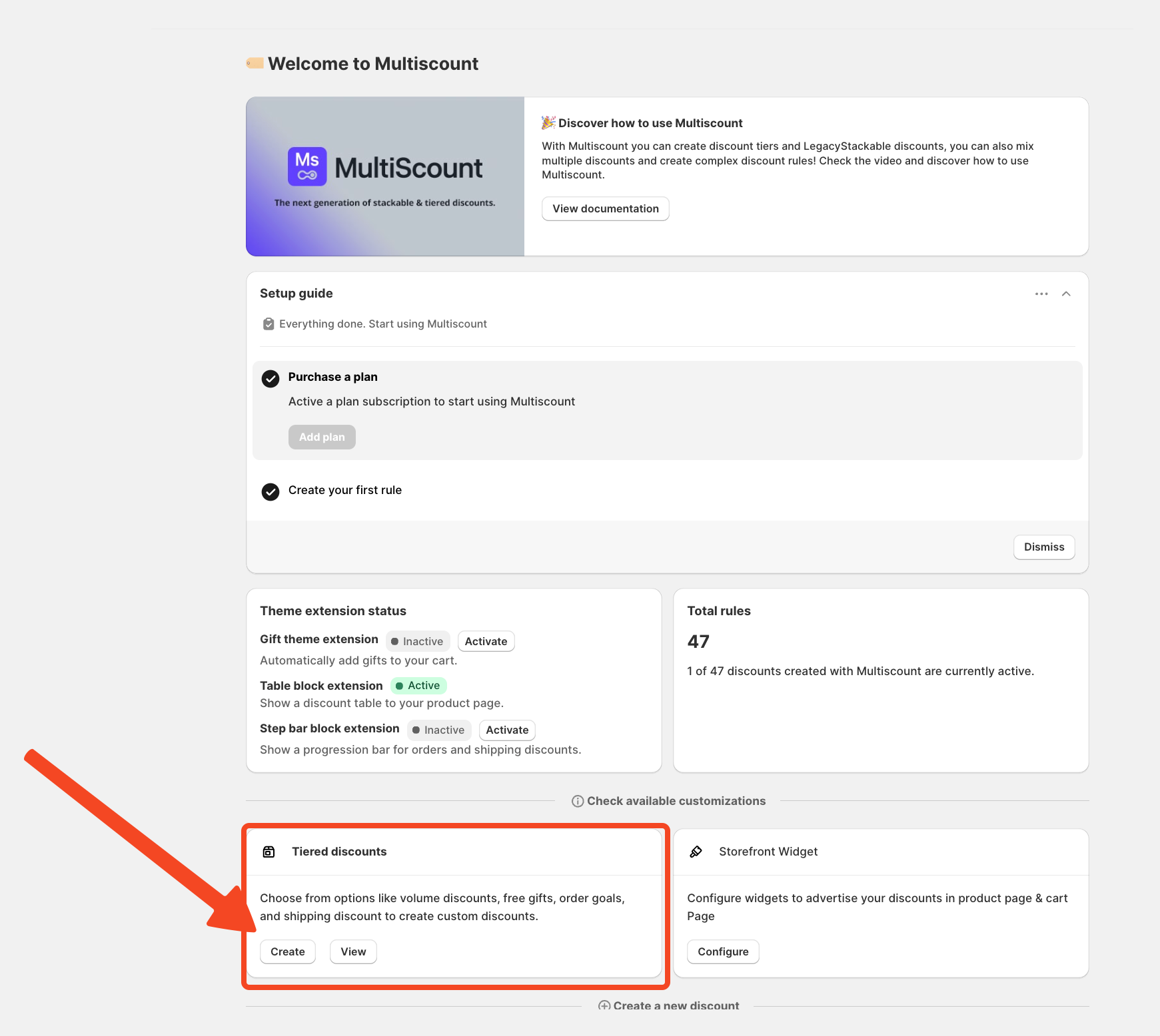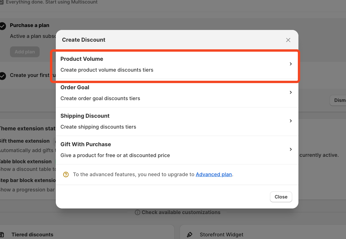 From the Multiscount dashboard, choose the discount type that best suits your needs. In this example, we'll use "Product Discount" but it is the same for all other discounts as well.