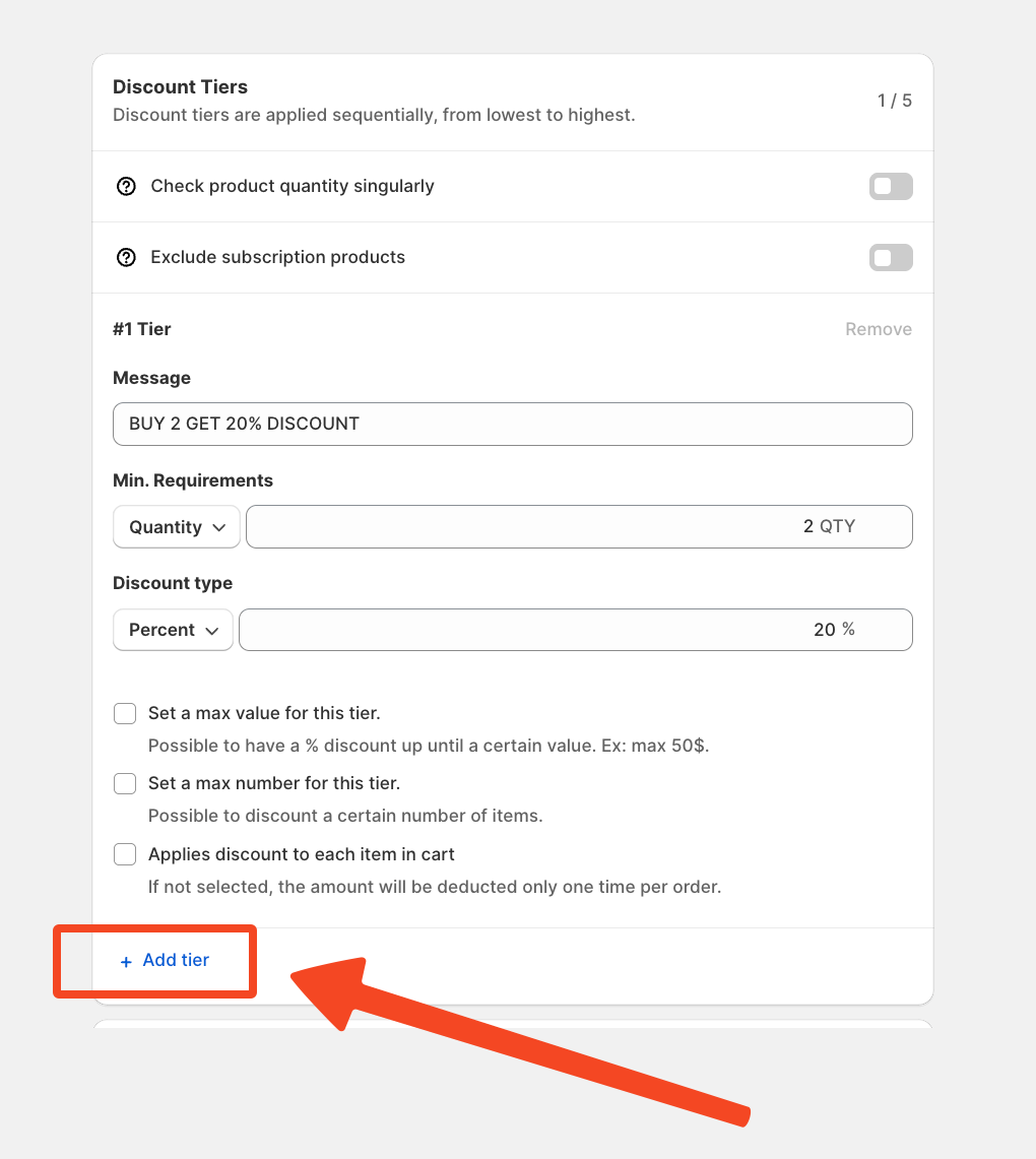 In the “Discount Tier” create a list of all the tiers you want up to 12 because we are using the Advanced Plan.