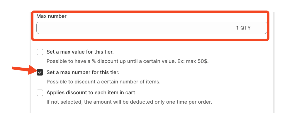 - You can limit the numer of item per discount