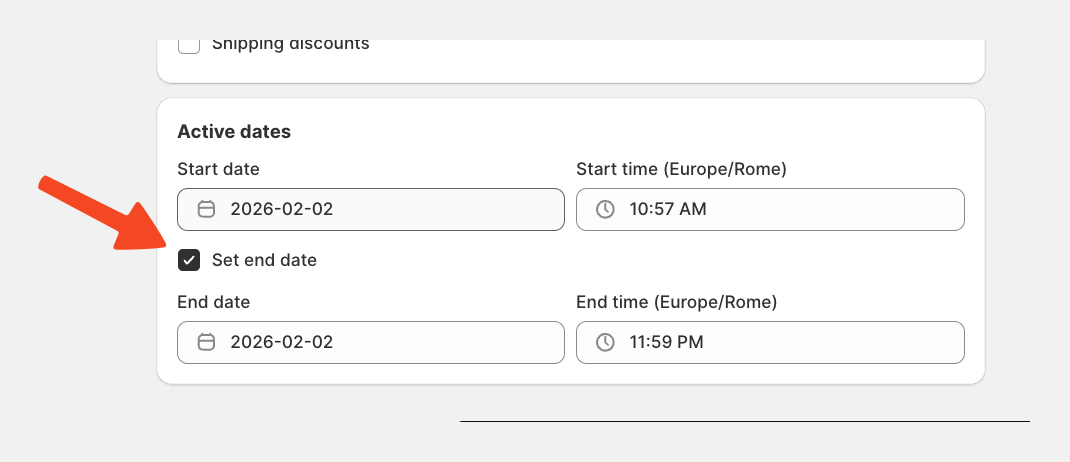 You can also schedule the discount to run during a specific date range or time period using the Active dates section.