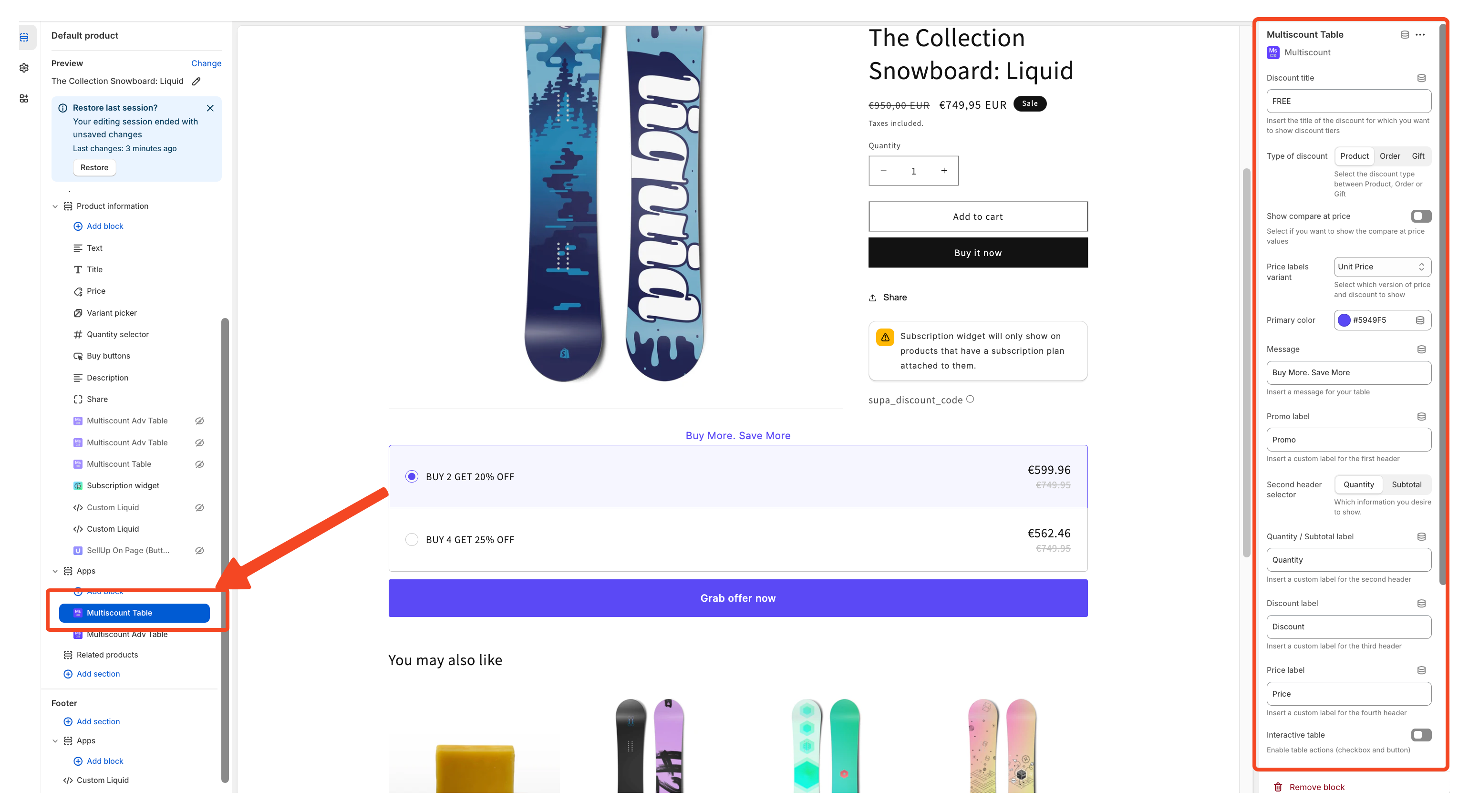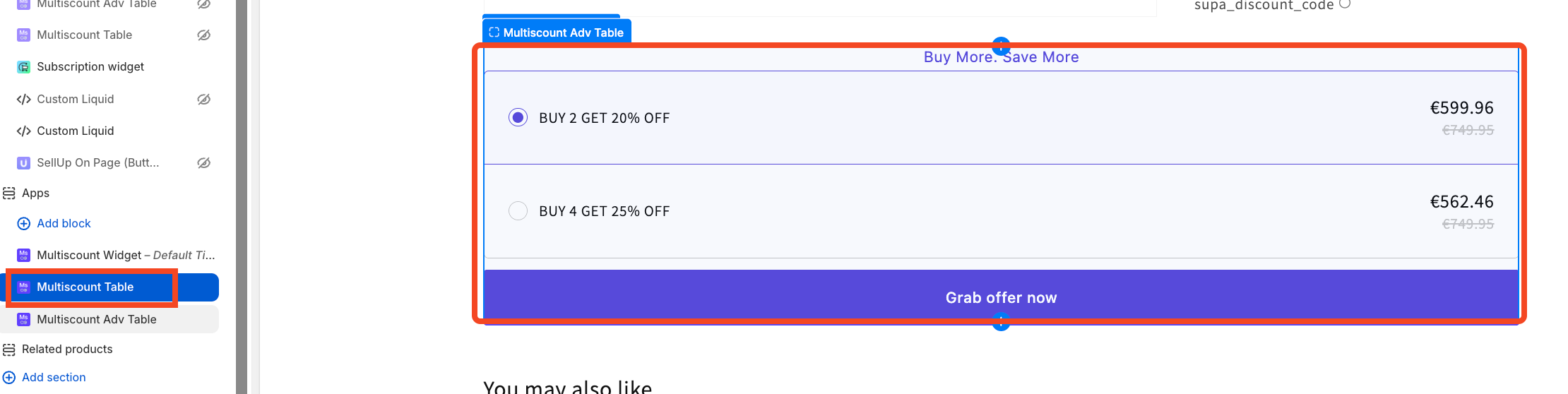 Multiscount FrontEnd Widget Customization