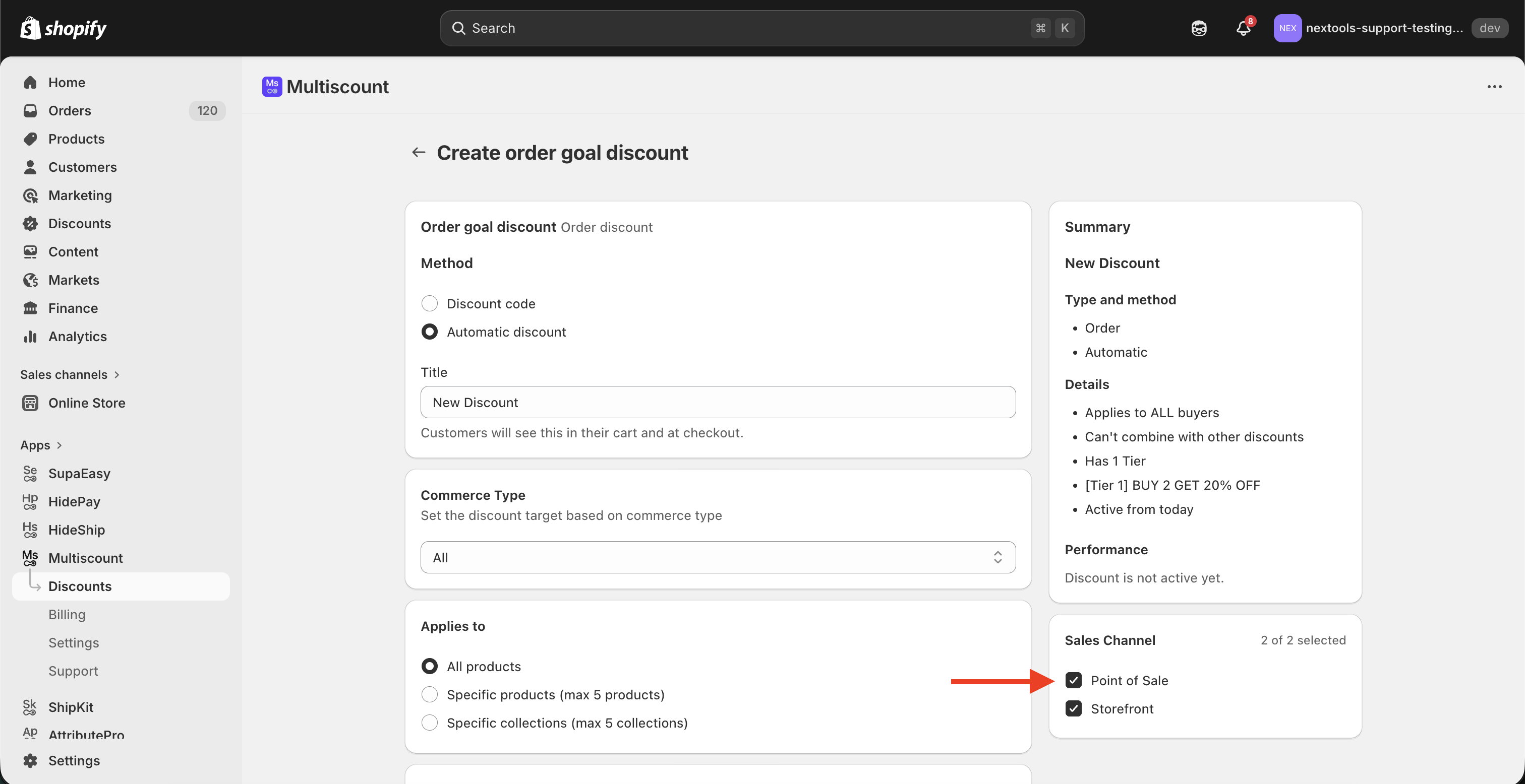 This ensures the discount will not apply online and will only be available on Shopify POS.