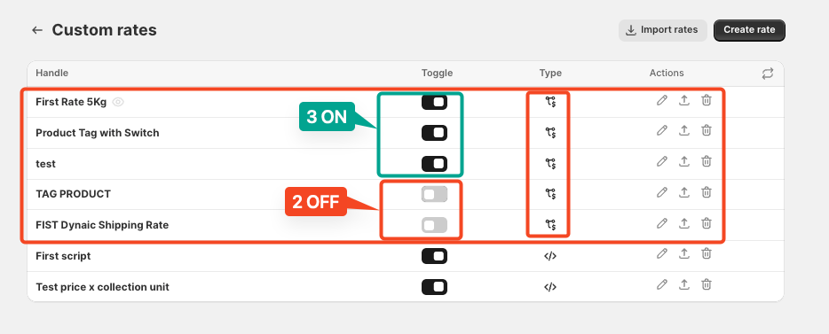 You have 3 rules ON + 2 rules OFF = 5 total rules