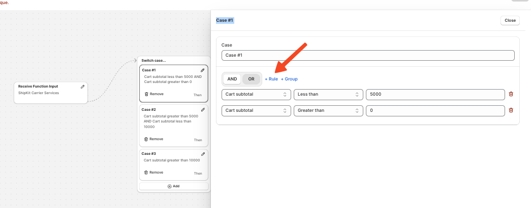 With the Switch function, you can quickly and easily create rules to apply special rates for specific customer segments, particular cart conditions, or different product types all without using any code, thanks to our intuitive Flow system.