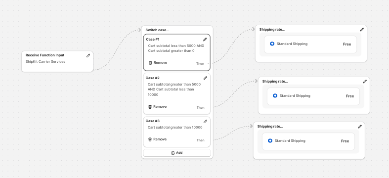 Every “case” of the switch has its own output, letting you connect each path to a different shipping rate.